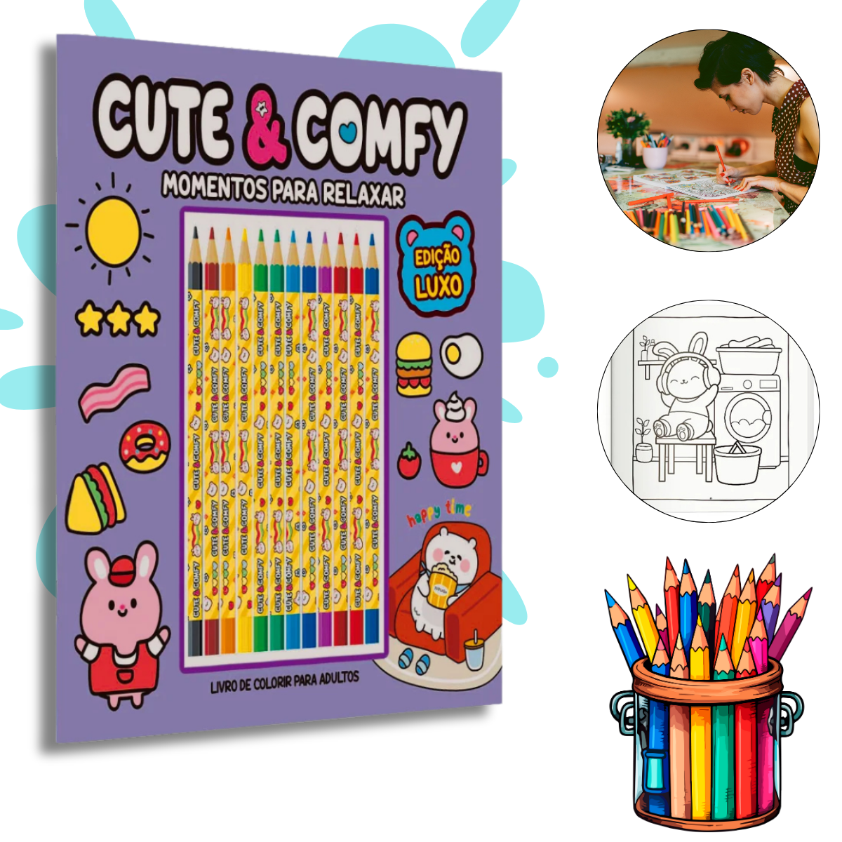 Se colorir é a sua paixão, prepare-se para uma experiência encantadora! O Cute & Comfy - Momentos para Relaxar traz 24 ilustrações exclusivas, criadas à mão, para estimular sua imaginação e proporcionar momentos de pura tranquilidade.