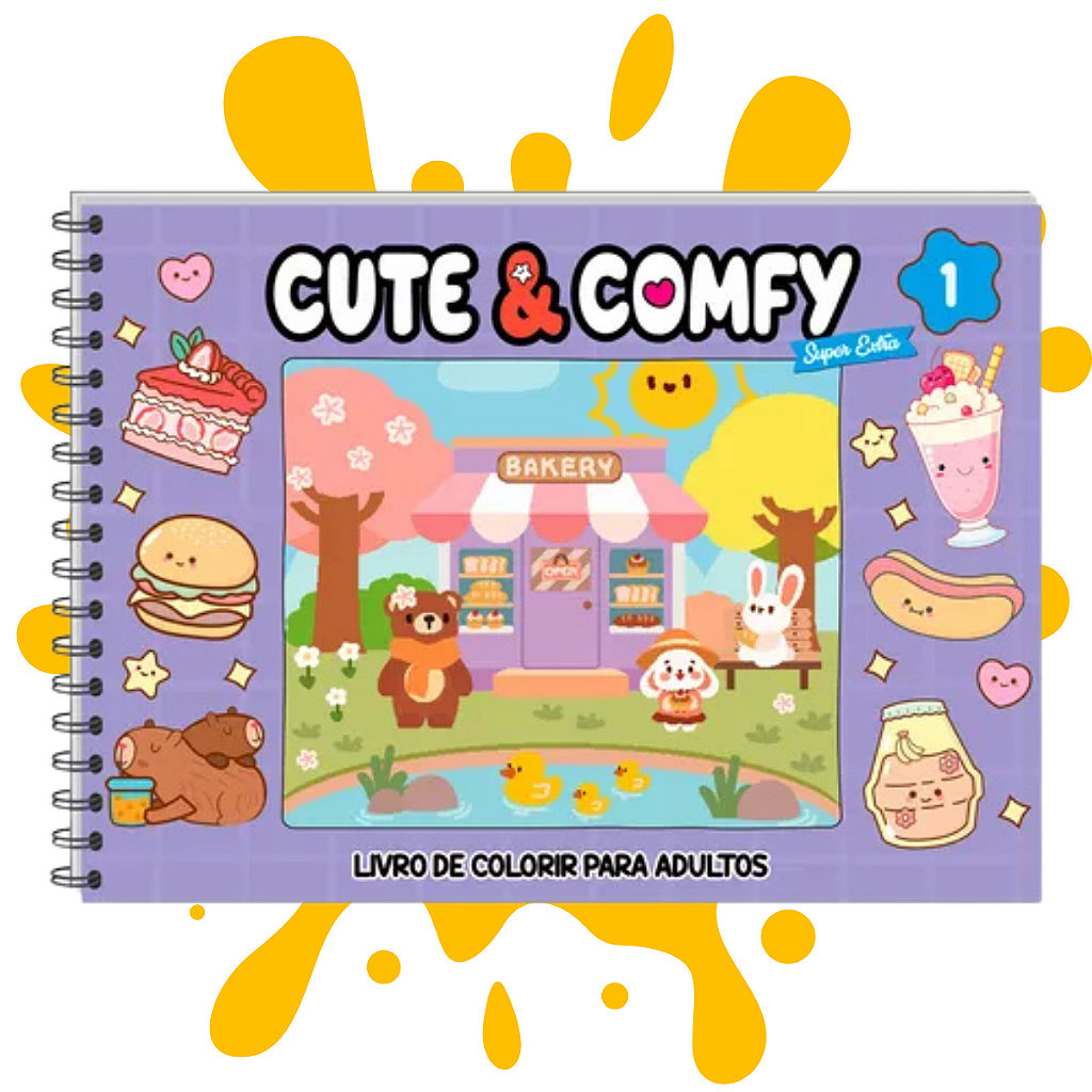 O sucesso do momento agora na sua casa! O livro de colorir Cute & Comfy é ideal para crianças, adultos e mães que desejam relaxar, estimular a criatividade e aproveitar momentos de tranquilidade.