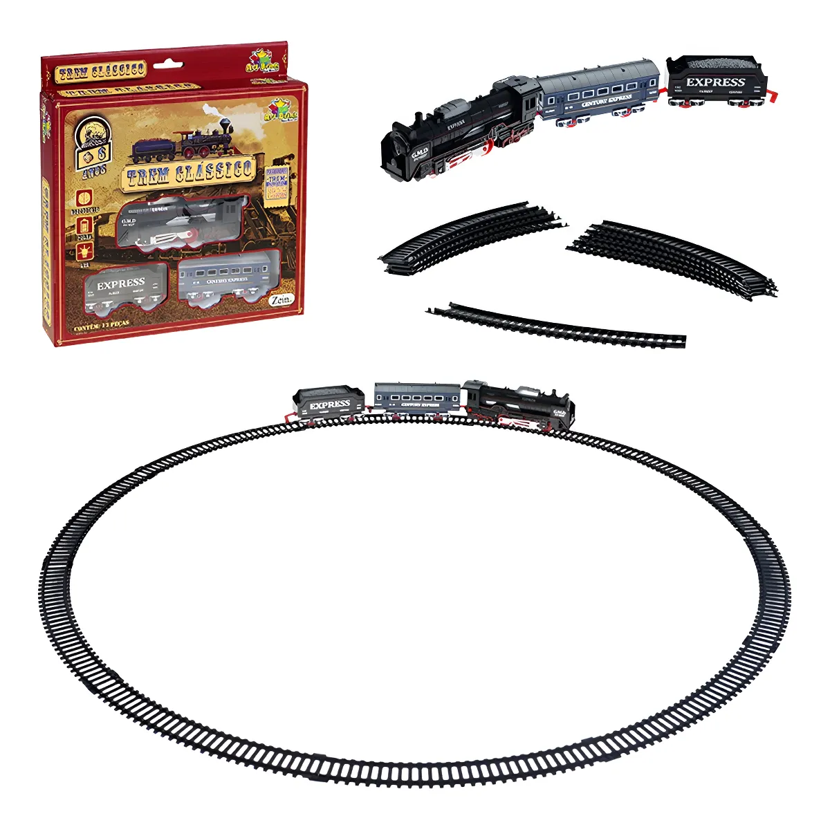 1x Trenzinho A Pilha Locomotiva Vagões E Trilho Trem Expresso